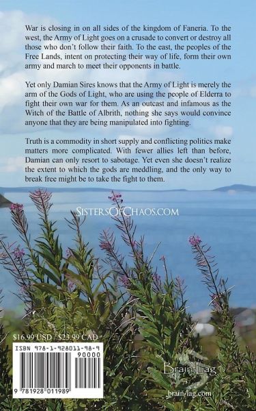 War is closing in on all sides of the kingdom of Faneria. To the west, the Army of Light goes on a crusade to convert or destroy all those who don't follow their faith. To the east, the peoples of the Free Lands, intent on protecting their way of life, form their own army and march to meet their opponents in battle. Yet only Damian Sires knows that the Army of Light is merely the arm of the Gods of Light, who are using the people of Elderra to fight their own war for them. As an outcast and infamous as the Witch of the Battle of Albrith, nothing she says would convince anyone that they are being manipulated into fighting. Truth is a commodity in short supply and conflicting politics make matters more complicated. With fewer allies left than before, Damian can only resort to sabotage. Yet even she doesn't realize the extent to which the gods are meddling, and the only way to break free might be to take the fight to them.