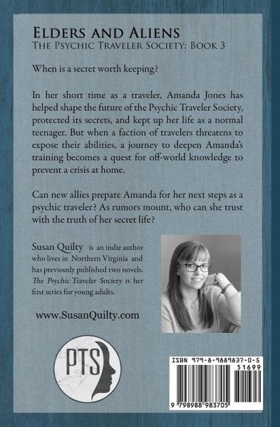 Amanda Jones takes her training to a new level in Elders and Aliens, the third and final book in The Psychic Traveler Society series. In her short time as a traveler, Amanda has helped shape the future of the Psychic Traveler Society, protected its secrets, and kept up her life as a normal teenager. But when a faction of travelers threatens to expose their abilities, a journey to deepen Amanda's training becomes a quest for off-world knowledge to prevent a crisis at home. Can new allies prepare Amanda for her next steps as a psychic traveler? As rumors mount, who can she trust with the truth of her secret life?