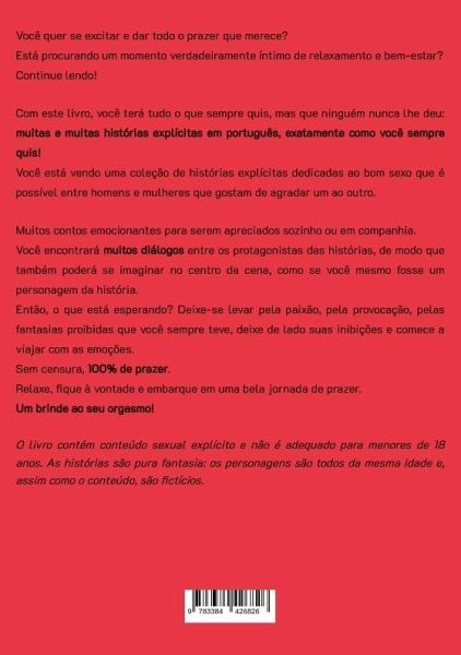 Você quer se excitar e dar todo o prazer que merece?Está procurando um momento verdadeiramente íntimo de relaxamento e bem-estar?Então continue lendo!Com este livro, você terá tudo o que sempre quis e que ninguém nunca lhe deu: muitas e muitas histórias explícitas em português, exatamente como você sempre quis!Você tem diante de si uma coleção de histórias explícitas dedicadas ao bom sexo que é possível entre homens e mulheres que gostam de agradar um ao outro. Muitos contos excitantes para experimentar sozinho ou acompanhado.Você encontrará muitos diálogos entre os protagonistas das histórias, de modo que também poderá se imaginar no centro da cena, como se você mesmo fosse um personagem da história.Então, o que está esperando? Deixe-se levar pela paixão, pela provocação, pelas fantasias proibidas que você sempre teve, deixe de lado suas inibições e comece a viajar com as emoções.Sem censura, 100% de prazer.Relaxe, fique à vontade e embarque em uma bela jornada de prazer.Um brinde ao seu orgasmo!