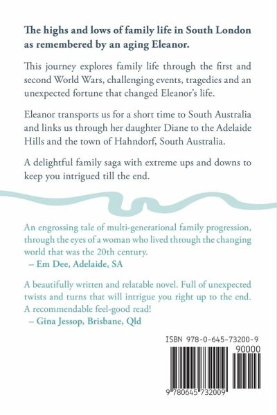 The highs and lows of family life in South London as remembered by an aging Eleanor. This journey explores family life through the first and second World Wars, challenging events, tragedies and an unexpected fortune that changed Eleanor's life. Eleanor transports us for a short time to South Australia and links us through her daughter Diane to the Adelaide Hills and the town of Hahndorf, South Australia. A delightful family saga with extreme ups and downs to keep you intrigued till the end. Large Print Edition.