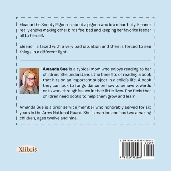 Eleanor the Snooty Pigeon is about a pigeon who is a mean bully. Eleanor really enjoys making other birds feel bad and keeping her favorite feeder all to herself. Eleanor is faced with a very bad situation and then is forced to see things in a different light.
