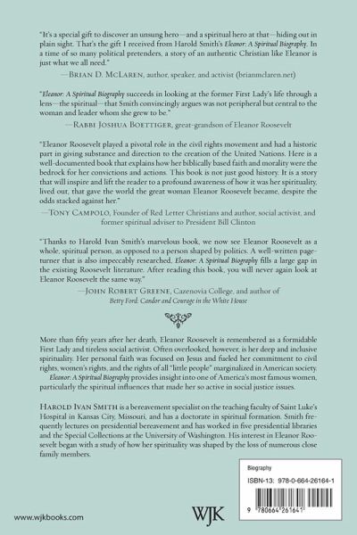 More than fifty years after her death, Eleanor Roosevelt is remembered as a formidable first lady and tireless social activist. Often overlooked, however, is her deep and inclusive spirituality. Her personal faith was shaped by reading the New Testament in her youth, giving her a Jesus-centered spirituality that fueled her commitment to civil rights, women's rights, and the rights of all "little people" marginalized in American society. She took seriously Jesus' words and despite her life of privilege, she made the needs of those on the margins her priority. Eleanor: A Spiritual Biography provides insight into one of America's most famous women, particularly the spiritual influences that made her so active in social justice issues.