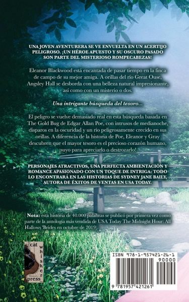 Una joven aventurera se ve envuelta en un acertijo peligroso. ¡Un héroe apuesto y su oscuro pasado son parte del misterioso rompecabezas! Eleanor Blackwood está encantada de pasar tiempo en la finca de campo de su mejor amiga. A orillas del río Great Ouse, Angsley Hall se desborda con una belleza natural impresionante, así como con un misterio o dos.Grayson O'Connor, cuidador de una finca cercana, no es inmune a los encantos de Eleanor. Es cierto que todavía trepa a los árboles y actúa precipitadamente, pero también tiene un ingenio cautivantemente rápido y un humor alegre. Una intrigante búsqueda del tesoro. . . El peligro se vuelve demasiado real en esta búsqueda basada en The Gold Bug de Edgar Allan Poe, con intrusos de medianoche, disparos en la oscuridad y un río peligrosamente crecido en sus orillas. A diferencia de la historia de Poe, Eleanor y Gray descubren que el mayor tesoro es el precioso corazón humano, ¡suyo para apreciarlo o destrozarlo! ¿¿( Nota: esta historia de 40.000 palabras se publicó por primera vez como parte de la antología más vendida de USA Today The Midnight Hour: All Hallows 'Brides en octubre de 2019).
