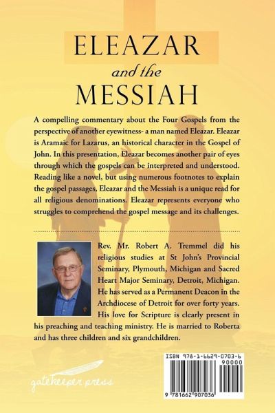 Robert A. Tremmel is a Permanent Deacon in the Roman Catholic Church. I have a B.S. degree in Chemistry and worked as a Research Chemist for over 50 years, authoring numerous patents and articles in the field of electroplating. After my ordination I continued my religious studies by pursuing a graduate degree in New Testament at St John's Provincial Seminary, Plymouth, Michigan and Sacred Heart Major Seminary, Detroit, Michigan. I have taught scripture on a parish and vicariate level for over 40 years and enjoy teaching a great deal. I have previously published two books, "The Four Gospels" and "Words to Live By" . "Words to Live By", a reflection on certain gospel passages, I believe, accomplished my goals. However, "The Four Gospels" did not accomplish what I hoped to achieve. I was too difficult for many of my readers and consequently was not the easy to understand book I had hoped it would be. My new book which I am submitting to you to publish, I believe will be more easily understood. It is definitely a scholarly work but is written to read like a novel. Seen through the eyes of an on- looker , Eleazar by name, the four Gospels come to life. Numerous footnotes guide the reader to a better understanding of the ministry of Jesus Christ. Eleazar, the Hebrew name for Lazarus, is a real person mentioned in the Gospel of John. Through him I can help the reader experience what it was like to walk with Jesus on his journey to the cross and beyond. I have been a Permanent Deacon for 40 years and am currently retired which is technically called "Senior Status". I am still active in my Church, teaching and preaching on occasion, administering the sacraments of marriage and baptism and presiding at wake services and funerals. I am married to my wife Robbie (55 years) and have three children and six grandchildren.