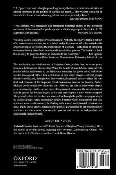 Davis discusses the increasing role of interest groups, the press, and the public, whose role is not prescribed in the Constitution, in the selection and confirmation of Supreme Court justices and how it affects the process. First he examines in detail the history and nature of the process, then he looks at the role and impact of other players. His conclusions about how non-political actors affect the outcome of Supreme Court justice selection leads him at the end of his book to suggest controversial reforms and their prospects for success.