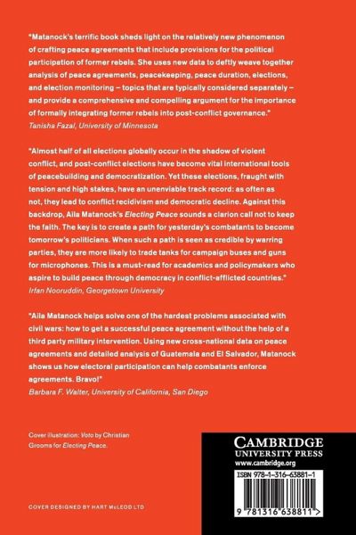 Part I. Introduction and Theory: 1. Credible transitions from civil conflict: provisions for combatant participation in post-conflict elections; 2. Electoral participation provisions: a theory of external engagement; 3. International involvement over time: changes with the end of the Cold War and patterns there-after; Part II. Causes of Electoral Participation Provisions: 4. Trading bullets for ballots: examining the inclusion of electoral participation provisions; 5. Shifting expectations of engagement: paving a path for peace agreements based on electoral participation provisions; Part III. Consequences of Electoral Participation Provisions: 6. Participating for peace: examining the effect of electoral participation provisions on peace; 7. Engaging through elections: external observation and incentives around elections during implementation; Part IV. Conclusion: 8. Securing peace: conclusions about electoral participation and external engagement in post-conflict states.
