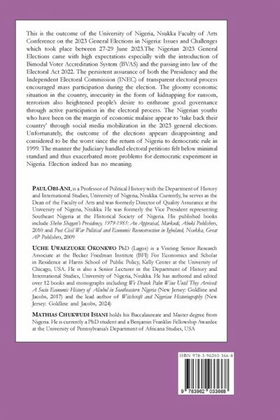 PAUL OBI-ANI, is a Professor of Political History with the Department of History and International Studies, University of Nigeria, Nsukka. Currently, he serves as the Dean of the Faculty of Arts and was formerly Director of Quality Assurance at the University of Nigeria, Nsukka. He was formerly the Vice President representing Southeast Nigeria at the Historical Society of Nigeria. His published books include Shehu Shagari's Presidency, 1979-1983: An Appraisal, Markudi, Aboki Publishers, 2010 and Post Civil War Political and Economic Reconstruction in Igboland, Nsukka, Great AP Publishers, 2009UCHE UWAEZUOKE OKONKWO PhD (Lagos) is a Visiting Senior Research Associate at the Becker Friedman Institute (BFI) For Economics and Scholar in Residence at Harris School of Public Policy, Kelly Center at the University of Chicago, USA. He is also a Senior Lecturer in the Department of History and International Studies, University of Nigeria, Nsukka. He has authored and edited over 12 books and monographs including We drank Palm Wine until they arrived: A Socio Economic History of Alcohol in Southeastern Nigeria (New Jersey: Goldline and Jacobs, 2017) and the lead author of Witchcraft and Nigerian Historiography (New Jersey: Goldline and Jacobs, 2024)MATHIAS CHUKWUDI ISIANI holds his Baccalaureate and Master degree from Nigeria. He is currently a PhD student and a Benjamin Franklin Fellowship Awardee at the University of Pennsylvania's Department of Africana Studies, USA