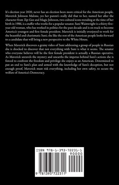 It's election year 2020, never has an election been more critical for the American people. Maverick Johnson Malone, yes her parent's really did that to her, named her after the character from Top Gun and Magic Johnson, two cultural icons trending at the time of her birth in 1986, is a staffer who works for a popular senator. Suni Wainwright is a thirty-five-year-old woman, who has worked in politics for the past decade and is on track to become America's youngest and first female president. Maverick is initially overjoyed to work for the beautiful and charismatic Suni; she like the rest of the American people looks forward to a candidate that will bring a new perspective to the White House. When Maverick discovers a grainy video of Suni addressing a group of people in Russian she is shocked to discover that not everything with Suni is what it seems. The senator who everyone believes will be the first female president is actually a Russian operative. As Maverick unravels the mystery and unearths the impetus behind Suni's actions she is forced to confront the freedom and privilege she enjoys as an American. Determined to put an end to Suni's plan and armed with the knowledge of Suni's deception, but not enough proof, Maverick must risk everything, including her own safety, to secure the welfare of America's Democracy.