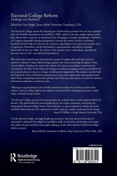 The United States has not updated the Electoral College system since the Twelfth Amendment was ratified in 1804, despite public opinion polls showing a majority of Americans are in favor of changing or outright abolishing it. So why hasn't the United States reformed this system? Electoral College Reform brings together new essays examining all aspects of this crucial debate, including the reasons for reform, the issues surrounding a constitutional amendment, the effect of the Electoral College on political campaigns and the possibilities for extra-constitutional avenues to change. The authors consider both the Federalists' vision of balanced representation and a more democratic and equality-based ideal. These competing frameworks, perhaps more than any other factor, account for centuries of American indecision on this key issue. By offering an unprecedented and carefully researched analysis of an always controversial subject, this volume explores the potential for changing a system that many contend is long overdue.
