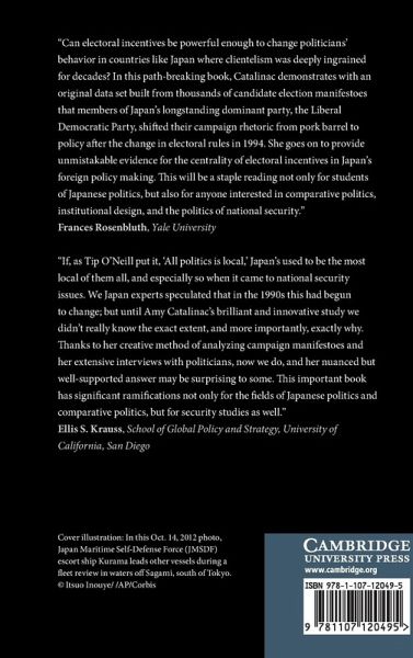 Japan is the third-largest economy in the world and a key ally of the United States. Yet the determinants of Japanese security policy are not well understood. The question of why Japan never sought the independent military capabilities that would be commensurate with its economic power has puzzled scholars of international relations for decades. Applying new tools for the quantitative analysis of text to a new collection of 7,497 Japanese-language election manifestos used in elections between 1986 and 2009, this book argues that the electoral strategies politicians in the ruling party were forced to adopt under Japan's old electoral system made it extraordinarily difficult for them to focus on security issues and to change security policy. It was only when their electoral strategies shifted after electoral reform in 1994 that these same politicians became able to pay attention and change security policy.