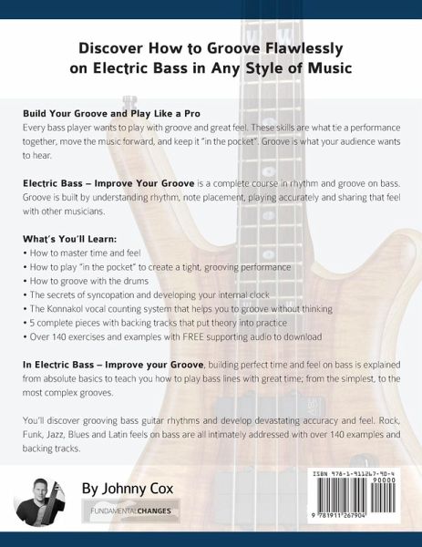 In Electric Bass - Improve your Groove, building perfect time and feel on bass is explained from absolute basics to teach you how to play bass lines with great rhythm; from the simplest, to the most complex grooves.