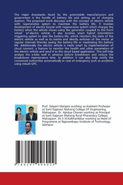 The major drawbacks faced by the automobile manufacturers and government is the hurdle of battery life and setting up of charging stations. The proposed work discusses with the concept of electric vehicle with regenerative system to maximize the battery life. It involves development of electric bicycle with regenerative system which charges the battery when the vehicle moves using the generator coupled to the front wheel of electric vehicle. It also involves smart hybrid intermittent triggering system to save the battery life, which monitors the state of the electric vehicle as well as its inertia and silently switches of the motor at regular intervals thereby saving the battery life or maximizing the battery life. Additionally the electric vehicle is made smart by implementation of cloud connect, a feature to monitor the health and other parameters of the electric vehicle and send it to the cloud based application. This will help analyze the e-bike well in advance before breakdown and reduce the breakdown maintenance time. In addition it can also help notify the concerned authorities automatically in case of emergency such as accidents using inbuilt GPS.