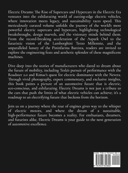Electric Dreams: The Rise of Supercars and Hypercars in the Electric Era ventures into the exhilarating world of cutting-edge electric vehicles, where innovation meets legacy, and sustainability races speed. This meticulously curated volume unfolds the journey of the world's most powerful electric supercars and hypercars, highlighting technological breakthroughs, design marvels, and the visionary minds behind them. From the record-breaking acceleration of the Aspark Owl to the futuristic vision of the Lamborghini Terzo Millennio, and the unparalleled luxury of the Pininfarina Battista, readers are invited to explore the engineering feats and aesthetic splendor of these magnificent machines. Dive deep into the stories of manufacturers who dared to dream about the future of mobility, including Tesla's pursuit of performance with the Roadster 2.0 and Rimac's quest for electric dominance with the Nevera. Through vivid photography, expert commentary, and exclusive insights, this book paints a picture of an automotive future that is electric, eco-conscious, and exhilarating. Electric Dreams is not just a tribute to the cars that push the limits of what electric vehicles can achieve; it's a roadmap to an electrifying future that beckons from the horizon. Join us on a journey where the roar of engines gives way to the whisper of electric motors, and where the dream of a sustainable, high-performance future becomes a reality. For enthusiasts, dreamers, and futurists alike, Electric Dreams is your guide to the next generation of automotive excellence.