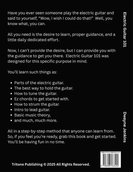 Dwayne Jenkins is an independent author, private instructor, accomplished musician, and entrepreneur. He has been an accomplished musician for 35 years and has authored many books on how to play guitar. He runs a very successful guitar-teaching business out of Denver, Colorado, and has been in business for over 20 years. Dwayne has a unique teaching style that gets students of all ages and skill levels to have fun playing the guitar quickly. His passion for music and teaching shines through every lesson plan, book, and online course that he creates. So if you'd like to learn to play the guitar, no matter if it's electric or acoustic, be sure to get involved with Dwayne's Guitar Lessons, where more can be found at his website: @dwaynesguitarlessons.com.