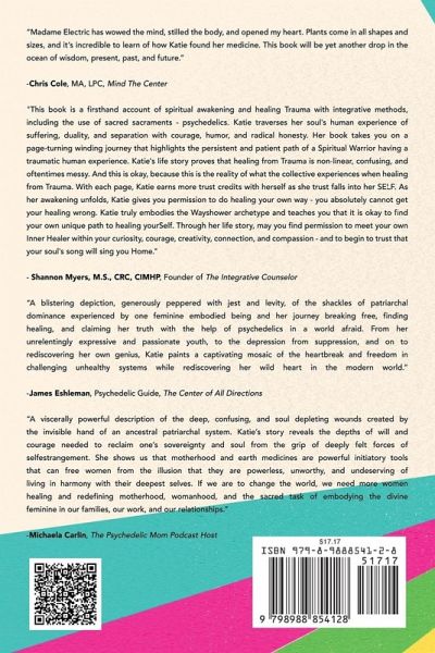 Electric Katieland is the spiritual memoir of how I liberated myself beyond the misleading construct of the mental health industry with the use of plant medicine. Readers dive into my story of being raised by a patriarchal father and a mother suffering from the oppression hidden within privilege. With no sense of personal identity and the mounting pressure to serve my parents' deepest wounds through perfectionism, I fell into a state of un-wellness. I went on a quest to heal the root cause of trauma and embrace neurodivergent and clairvoyant abilities while searching for my truest form of Self using Ayahuasca, Psilocybin, and Kambo. In order to manifest a new reality, I had to expose the old one that was filled with systemic oppression, patriarchal programming, and the loss of the Divine feminine in motherhood. With the use of alternative methods of healing I unlocked parts of my consciousness that had long been forgotten. I became aware of my ego and the spiritual desire to reunite with my soul. My path to heal uncovered a deeper knowing of the spectrum of the human experience and God-Source Consciousness.