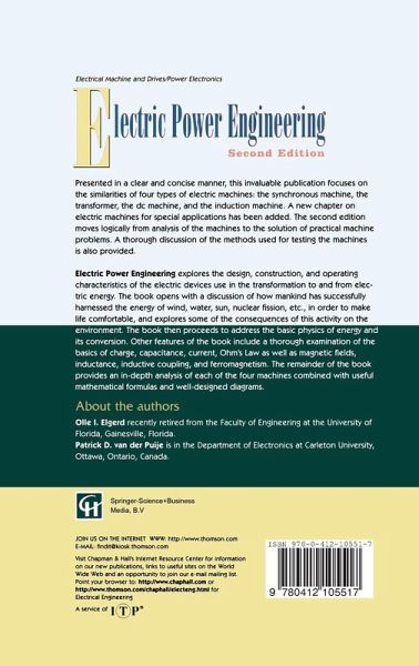 1 Energy: The Basis of Civilization.- 1.1 Historical Perspective.- 1.2 Energy Flow in Industrialized Societies.- 1.3 The Growth of Energy Consumption.- 1.4 Electric Energy.- 1.5 Summary.- Exercises.- References.- 2 Fundamentals of Energy.- 2.1 Energy and Gravitation.- 2.2 Gravitational Force Field.- 2.3 Gravitational Energy Exchange: Definition of Energy.- 2.4 Gravitational Potential: Potential Energy.- 2.5 General Expressions for Energy.- 2.6 Rate of Energy or Power.- 2.7 The Law of Conservation of Energy: First Law of Thermodynamics.- 2.8 Other Forms of Potential Energy.- 2.9 Forms of Kinetic Energy.- 2.10 Caloric (Heat or Thermal) Energy.- 2.11 Energy Dissipation.- 2.12 Nuclear Energy.- 2.13 Solar Energy.- 2.14 Summary.- Exercises.- References.- 3 Fundamentals of Electric Energy.- 3.1 Electric Energy Engineering.- 3.2 Physical Nature of Electricity: Electric Charge.- 3.3 Coulomb's Law: The Gravity Analog.- 3.4 The Electric Field.- 3.5 Electrostatic Energy.- 3.6 Electric Potential.- 3.7 General Field Configurations.- 3.8 Electrostatic Energy Storage: Capacitance.- 3.9 Practical Electric Capacitors.- 3.10 Electrodynamics: Electric Current.- 3.11 Currents in Electric Conductors.- 3.12 Ohm's Law.- 3.13 Basics of Electric Power.- 3.14 Resistive or Ohmic Power Dissipation.- 3.15 Electric Power Transmission.- 3.16 Electric Sources.- 3.17 The Magnetic Field.- 3.18 Magnetic Flux.- 3.19 Electromagnetic Induction: Faraday's and Lenz's Laws.- 3.20 The Electromagnetic Force Law.- 3.21 The Concept of Mutual Inductance.- 3.22 The Concept of Self-Inductance.- 3.23 Electromagnetic Energy Storage.- 3.24 Magnetic Energy Storage in Mutually Coupled Circuits.- 3.25 The Magnetic Moment.- 3.26 Ferromagnetism.- 3.27 Summary.- Exercises.- References.- 4 Synchronous Machine.- 4.1Direct Current Versus Alternating Current.- 4.2 Power in Single-Phase Alternating Current.- 4.3 The Single-Phase Alternating-Current Generator.- 4.4 The Three-Phase Generator.- 4.5 Balanced Three-Phase Loading.- 4.6 Torque Mechanism in a Three-Phase Generator.- 4.7 The Synchronous Machine as Part of a Power Grid.- 4.8 Summary and Some Final Observations.- Exercises.- References.- 5 The Power Transformer.- 5.1 Why Transformers?.- 5.2 The Single-Phase Transformer: Basic Design.- 5.3 The Concept of an "Ideal" Transformer.- 5.4 The Physical Transformer: The Ideal Transformer.- 5.5 Some Practical Design Considerations.- 5.6 Multiwinding Transformers.- 5.7 Autotransformers.- 5.8 Three-Phase Power Transformers.- 5.9 Summary.- Exercises.- References.- 6 The Electric Power Network.- 6.1 The Structure of the Power Network.- 6.2 Objectives of Power System Operation.- 6.3 Real Power Balance: The Load-Frequency Control Problem.- 6.4 Optimum Generation.- 6.5 Line Power and Its Control.- 6.6 Load Flow Analysis.- 6.7 Summary.- Exercises.- References.- 7 The Direct Current Machine.- 7.1 Torque-Speed Requirements of Motors.- 7.2 A Direct Current Motor Prototype.- 7.3 Physical Motor Design.- 7.4 Operating Characteristics of the Direct Current Machine.- 7.5 Direct Current Power Supply Systems.- 7.6 Summary.- Exercises.- References.- 8 Induction Machines.- 8.1 Why Induction Motors?.- 8.2 Basic Design Features.- 8.3 The Rotating Stator Flux Wave.- 8.4 The Torque-Creating Mechanism.- 8.5 Three-Phase Induction Motor Performance Analysis.- 8.6 Modification of the Model for Nonideal Motor Characteristics.- 8.7 Operational Considerations.- 8.8 Single-Phase Induction Motors.- 8.9 Summary.- Exercises.- References.- 9 Electric Motors for Special Applications.- 9.1 Linear Induction Motor.- 9.2Stepper Motor.- 9.3 Brushless Direct Current Motors.- 9.4 Synchros.- 9.5 Summary.- Exercises.- References.- Appendix A.- Phasor Analysis.- A.1 Vector Representation of Sinusoids: The Concept of Phasors.- A.2 Phasor Representation Using Complex Numbers.- A.2.1 Complex Numbers: Definition.- A.2.2 Complex Algebra.- A.3 Impedances.- A.4 Admittances.- Appendix B.- Spectral Analysis.- B.1 Periodic Waveforms.- B.2 Finding the Amplitudes of the Harmonics.- B.3 Spectral Analysis by Numerical Integration.- B.4 Periodic Waveforms in the Space Domain.- Appendix C.- The SI Unit System.- C.1 General.- C.2 Basic Units.- C.3 Derived Units.- C.4 Multiplication Factors and Prefixes.- C.5 Conversion Between Unit Systems.- References.- Appendix D.- Units of Energy and Power Conversion.- D.1 Conversion of Units of Energy.- D.2 Conversion of Units of Power.- Answers to Selected Exercises.