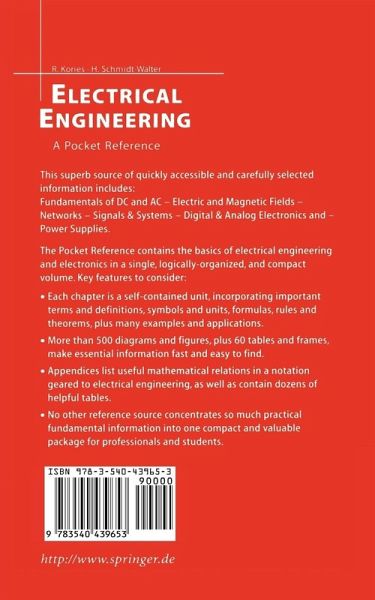 This superb source of quickly accessible and carefully selected information includes: _Fundamentals of DC and AC _Electric and magnetic Fields_Networks _Signals & Systems _Digital & Analog Electronics and _Power Supplies. The Pocket Reference contains the basics of electrical engineering and electronics in a single, logically-organized, compact volume. Key features to consider: