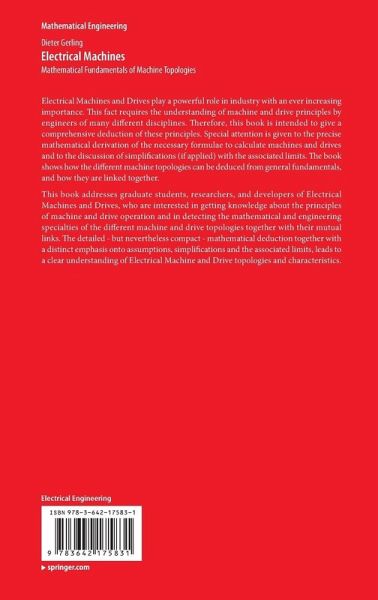 Electrical Machines and Drives play a vital role in industry with an ever increasing importance. This fact necessitates the understanding of machine and drive principles by engineers of many different disciplines. Therefore, this book is intended to give a comprehensive deduction of these principles. Special attention is given to the precise mathematical deduction of the necessary formulae to calculate machines and drives, and to the discussion of simplifications (if applied) with the associated limits. So the book shows how the different machine topologies can be deduced from general fundamentals, and how they are linked.