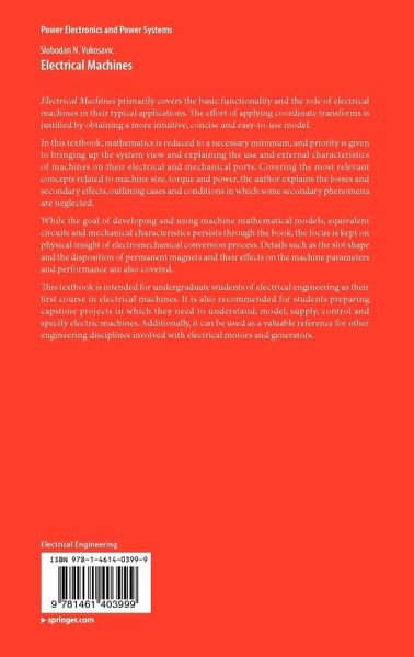 In this textbook, mathematics is reduced to a necessary minimum, and priority is given to bringing up the system view and explaining the use and external characteristics of machines on their electrical and mechanical ports. Covering the most relevant concepts relating to machine size, torque and power, the author explains the losses and secondary effects, outlining cases and conditions in which some secondary phenomena are neglected.