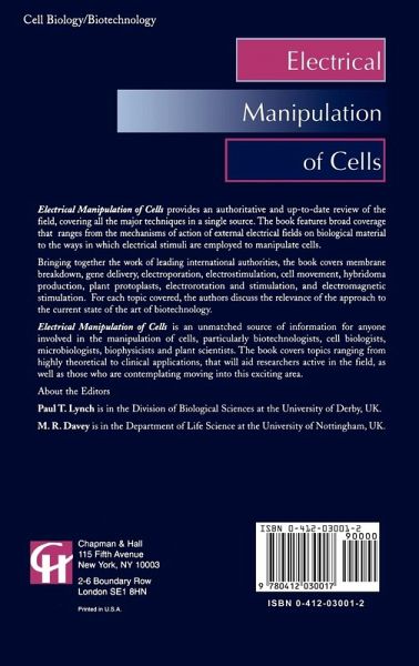 For each topic, the authors discuss the relevance of the approach to the current state of the art of biotechnology. Electrical Manipulation of Cells is an unmatched source of information for anyone involved in the manipulation of cells, particularly biotechnologists, cell biology, microbiologists, biophysicists and plant scientists. For researchers, the book provides technical material that ccan be employed in their own work. Students will gain thorough appreciation of the applications of this important technique.