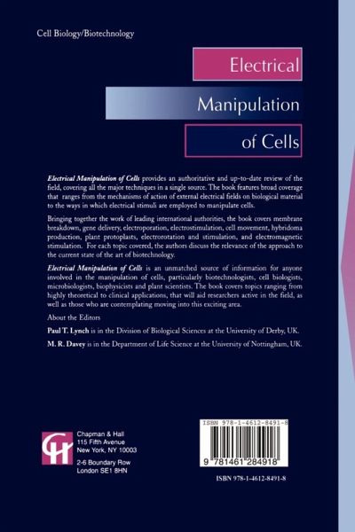 For each topic, the authors discuss the relevance of the approach to the current state of the art of biotechnology. Electrical Manipulation of Cells is an unmatched source of information for anyone involved in the manipulation of cells, particularly biotechnologists, cell biology, microbiologists, biophysicists and plant scientists. For researchers, the book provides technical material that ccan be employed in their own work. Students will gain thorough appreciation of the applications of this important technique.