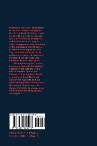 Functional electrical stimulation is the most important application in the field of clinical treatment with currents or magnetism. This technique artificially generates neural activity in order to overcome lost functions of the paralized, incontinent or sensory handicapped patient. Electricity and magnetism is also used in many cases, e.g., to stimulate bone growth or wound healing. Nevertheless, the basic mechanism of the artificial excitation of nerve and muscle fibers has become known only in the last few years. Although many textbooks are concerned with the natural excitation process there is a lack of information on the influence of an applied electrical or magnetic field. This book, written for students and biomedical engineers, should close the gap and, furthermore, it should stimulate the design of new instrumentation using optimal strategies.