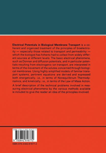 The material of this volume was originally planned to be incorporated in the preceding monograph Mechanics and Energetics of Biological Transport. A separate and coherent treatment ofthe variety of bioelectrical phenomena was considered preferable, mainly for didactic reasons. Usually, the biologist has to gather the principles of bioelectricity he needs from different sources and on different levels. The present book intends to provide these principles in a more uniform context and in a form adjusted to the problems of a biol ogist, rather than of a physicist or electrical engineer. The main emphasis is put on the molecular aspect by relating the bioelectrical phenomena, such as the membrane diffusion potentials, pump potentials, or redox potentials, to the properties of the membrane concerned, and, as far as pOSSible, to specific steps of transport and metabolism of ions and nonelectrolytes. Little space is devoted to the familiar and widely used representation of bioelectricalphe nomena in terms of electrical networks, of equivalent circuits with batteries, resistances, capacities etc. In order to elucidate the basic principles, the formal treatment is kept as simple as pOSSible, using highly Simplified models, based on biological systems. The corresponding equations are derived in two ways: kinetically, i. e. in terms of the Law of Mass Action, as well as energetically, i. e. , in terms of Nonequilibrium Thermodynamics.