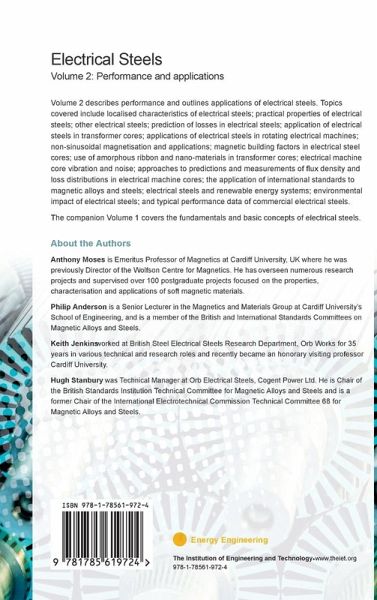 * Chapter 1: Localised characteristics of electrical steels * Chapter 2: Practical properties of electrical steels * Chapter 3: Other electrical steels * Chapter 4: Prediction of losses in electrical steels * Chapter 5: Application of electrical steels in transformer cores * Chapter 6: Applications of electrical steel in rotating electrical machines * Chapter 7: Non-sinusoidal magnetisation and applications * Chapter 8: Magnetic building factors in electrical steel cores * Chapter 9: Use of amorphous ribbon and nano-materials in transformer cores * Chapter 10: Electrical machine core vibration and noise * Chapter 11: Approaches to predictions and measurements of flux density and loss distributions in electrical machine cores * Chapter 12: The application of international standards to magnetic alloys and steels * Chapter 13: Electrical steels and renewable energy systems * Chapter 14: Environmental impact of electrical steels * Chapter 15: Typical magnetic performance data of commercial electrical steels