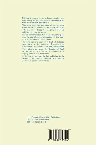 The interplay between the careful analysis of clinical electrocardiograms and results from animal experiments have in the past 60 years resulted in provo cative and brill ant concepts on the mechanisms of cardiac arrhythmias in man. Many of the animal experiments however were done on open-chested dogs with cut cardiac nerves and under the influence of pharmaca. It is doubtful, therefore whether these results can be transferred without reser vation to the human situation. The introduction of electrical stimulation of the heart in clinical cardiology has opened new ways to study some aspects of cardiac arrhythmias directly in the unaesthesized patient. This study reports observations on patients who were admitted to the University Department of Cardiology, Wilhelmina Gasthuis, Amsterdam, for the evaluation and treatment of tachycardias. Electrically induced premature beats were used in an effort to elucidate the origin and mechanism of these tachycardias. The first chapter is on classification and diagnosis of tachy cardias with special emphasis on our current knowledge of the differential diagnosis between supraventricular tachycardias with aberrant conduction and ventricular tachycardias. This is followed by theoretical considerations on tachycardias especially in relation to the methods used in this study. After an outline of these methods the results of our studies in patients with atrial flutter, A-V junc tional tachycardias and tachycardias related to the pre-excitation syndrome are reported. A discussion on the value of electrical stimulation for the treatment of tachycardias is followed by a summary of our results.