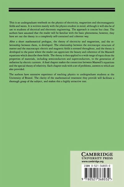 This is a concise but clear undergraduate textbook on the physics of electricity, magnetism and electromagnetic fields and waves.