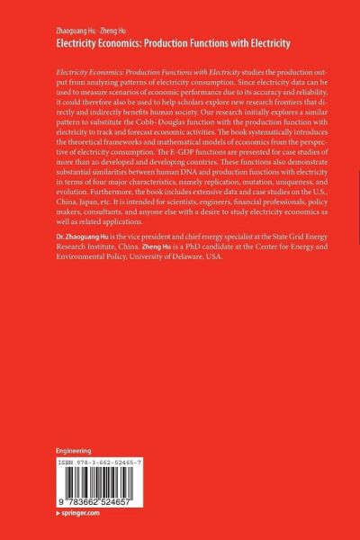 Electricity Economics: Production Functions with Electricity studies the production output from analyzing patterns of electricity consumption. Since electricity data can be used to measure scenarios of economic performance due to its accuracy and reliability, it could therefore also be used to help scholars explore new research frontiers that directly and indirectly benefits human society. Our research initially explores a similar pattern to substitute the Cobb-Douglas function with the production function with electricity to track and forecast economic activities. The book systematically introduces the theoretical frameworks and mathematical models of economics from the perspective of electricity consumption. The E-GDP functions are presented for case studies of more than 20 developed and developing countries. These functions also demonstrate substantial similarities between human DNA and production functions with electricity in terms of four major characteristics, namely replication, mutation, uniqueness, and evolution. Furthermore, the book includes extensive data and case studies on the U.S., China, Japan, etc. It is intended for scientists, engineers, financial professionals, policy makers, consultants, and anyone else with a desire to study electricity economics as well as related applications.
