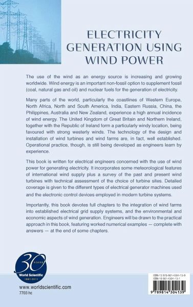 The use of the wind as an energy source is increasing and growing worldwide. Wind energy is an important non-fossil option to supplement fossil (coal, natural gas and oil) and nuclear fuels for the generation of electricity. Many parts of the world, particularly the coastlines of Western Europe, North Africa, North and South America, India, Eastern Russia, China, the Philippines, Australia and New Zealand, experience a high annual incidence of wind energy. The United Kingdom of Great Britain and Northern Ireland, together with the Republic of Ireland form a particularly windy location, being favoured with strong westerly winds. The technology of the design and installation of wind turbines and wind farms are, in fact, well established. Operational practice, though, is still being developed as engineers learn by experience. This book is written for electrical engineers concerned with the use of wind power for generating electricity. It incorporates some meteorological features of international wind supply plus a survey of the past and present wind turbines with technical assessment of the choice of turbine sites. Detailed coverage is given to the different types of electrical generator machines used and the electronic control devices employed in modern turbine systems. Importantly, this book devotes full chapters to the integration of wind farms into established electrical grid supply systems, and the environmental and economic aspects of wind generation. Engineers will be drawn to the practical approach in this book, featuring worked numerical examples complete with answers at the end of some chapters.