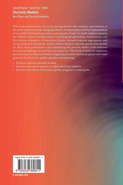 This book analyzes new electricity pricing models that consider uncertainties in the power market due to the changing behavior of market players and the implementation of renewable distributed generation and responsive loads. In-depth chapters examine the different types of market players including the generation, transmission, and distribution companies, virtual power plants, demand response aggregators, and energy hubs and microgrids. Expert authors propose optimal operational models for short-term performance and scheduling and present readers with solutions for pricing challenges in uncertain environments. This book is useful for engineers, researchers and students involved in integrating demand response programs into smart grids and for electricity market operation and planning.