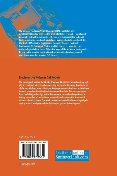 "The main focus of this book is to propose methods for deriving a variety of shapes and motions of such machines, using a particular ElectroActive Polymer gel (EAP). ... This book is the first comprehensive monograph in the world on deformable robots utilizing electroactive polymers with full of original simulation and experimental results." (George S. Stavrakakis, Zentralblatt MATH, Vol. 1190, 2010)