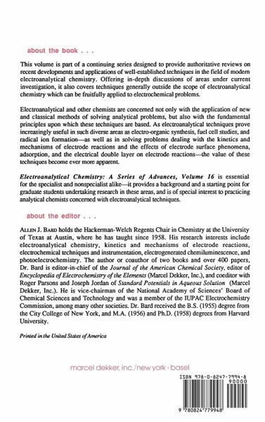 This volume provides authoritative reviews in the field of modern electroanalytical chemistry defined in its broadest sense. It is valuable to practicing analytical chemists interested in learning about and applying electroanalytical techniques.
