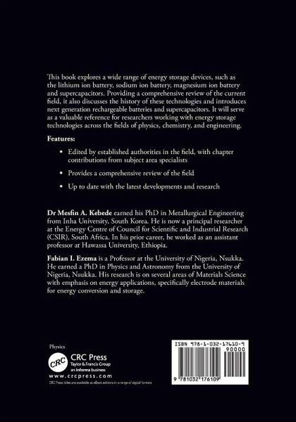Mesfin A. Kebede completed his PhD in Materials Science and Engineering from Inha University, South Korea, in 2009. He is currently a principal researcher at the Energy Centre, Council of Scientific and Industrial Research (CSIR), in South Africa. He has been studying and researching the properties and applications of nanostructured materials as electrodes for lithium-ion battery, gas sensors, luminescent and photoluminescence and photocatalysis for more than a decade. In his prior career, he worked as an assistant professor at Hawassa University, Ethiopia, where he supervised and mentored MSc and PhD students' research projects. He has authored two book chapters and more than 50 papers in reputed journals with an h-index of 14 with over 590 citations and has served as reviewer for several high-impact journals and as an editorial board member. Fabian I. Ezema is a professor at the University of Nigeria, Nsukka. He earned a PhD in Physics and Astronomy from the University of Nigeria, Nsukka. His research focused on several areas of Materials Science, from synthesis and characterizations of particles and thin-film materials through chemical routes with emphasis on energy applications. For the last 15 years, he has been working on energy conversion and storage (cathodes, anodes, supercapacitors, solar cells, among others), including novel methods of synthesis, characterization and evaluation of the electrochemical and optical properties. He has published about 180 papers in various international journals and given over 50 talks at various conferences. His h-index is 21 with over 1500 citations and he has served as reviewer for several high impact journals and as an editorial board member.