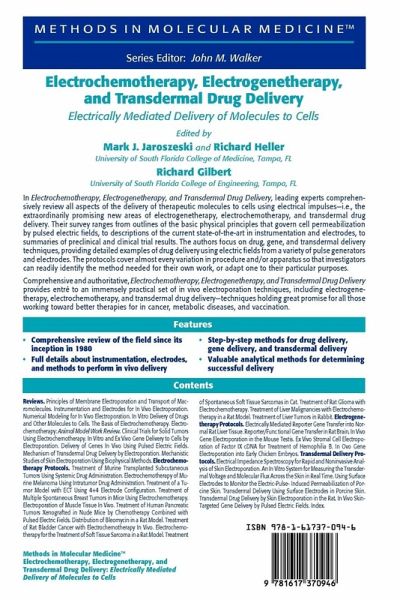 Pulsed electric fields have been applied to living systems in vitro for a host of delivery applications since the early 1980s. It has been established that the primary effect that electrical treatment has on cells is an induced increase in the permeability of membranes to exogenous molecules. This state of increased permeability was noted to be temporary and could be induced with little or no effect on cell viability. This physical phenomenon was termed electroporation. Numerous published studies have shown that electroporation can be applied to any cell type. These studies also exploited the phenomenon to deliver drugs, DNA, antibodies, proteins, and fluorescent molecules. The use of electricity to mediate delivery of these molecule types in vitro has proven to be an invaluable research tool for biological and biomedical scientists. Many of the in vitro applications for electrically mediated delivery have tremendous potential for the treatment of human disease. For example, the ef- cient delivery of drugs and plasmid DNA has strong implications for improving standard therapies, as well as gene therapies. This potential was realized about 12 years ago when electric pulses were used to deliver drugs to tumor cells in vivo. Since then, the utility of in vivo electroporation for the delivery of m- ecules has been demonstrated through new applications that have been developed with increasing frequency each year. Electrochemotherapy, Electrogenetherapy, and Transdermal Drug Delivery: Electrically Mediated Delivery of Molecules to Cells provides review and protocol chapters that completely cover this relatively new scientific discipline.