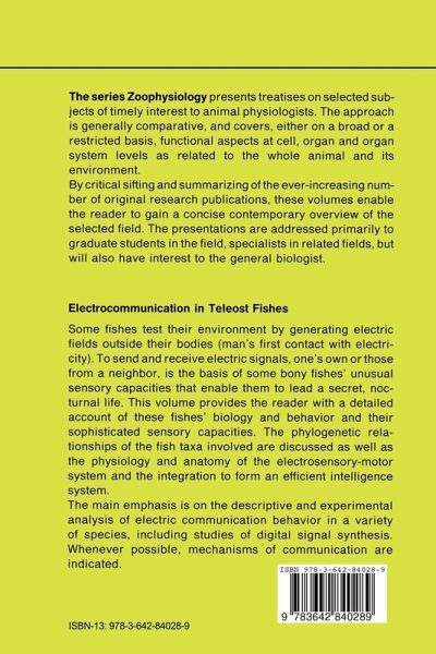 Some fishes test their environment by generating electric fields outside their bodies (man's first contact with electricity). To send and receive electric signals, one's own or those from a neighbor, is the basis of some bony fishes' unusual sensory capacities that enable them to lead a secret, nocturnal life. This volume provides the reader with a detailed account of these fishes' biology and behavior and their sophisticated sensory capacities. The phylogenetic relationships of the fish taxa involved are discussed as well as the physiology and anatomy of the electrosensory-motor-system and the integration to form an efficient intelligence system. The main emphasis is on the descriptive and experimental analysis of electric communication behavior in a variety of species, including studies of digital signal synthesis. Whenever possible, mechanisms of communication are indicated.