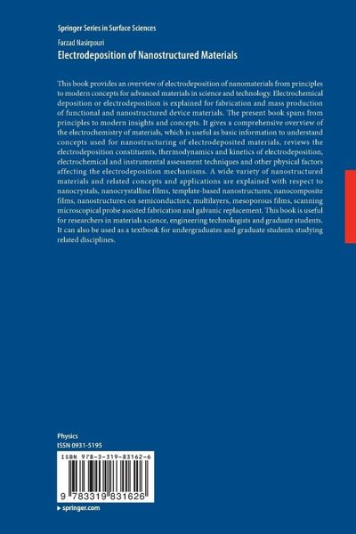 "This book provides a clear and comprehensive introduction to electrodeposition of nanostructured materials, from fundamental principles to recent advances. ... I recommend this book to all interested in electrodeposition and nanostructured materials, particularly to those entering the field. The book is suitable as a text for a graduate course. In addition, it is a good monograph for researchers with a chemistry, physics, or materials background." (Jianguo Lu, MRS Bulletin, Vol. 42 (11), November, 2017)
