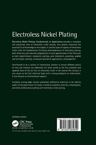 The book touches upon all aspects of electroless nickel, from the fundamentals (including thermodynamics of electroless plating, bath chemistry and substrate preparation) to applied areas like bath replenishment, composite coatings, post-treatments, polyalloys, graded and multilayer coatings, ultrasound assistance, applications, and properties.