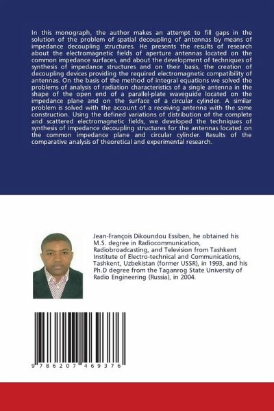 In this monograph, the author makes an attempt to fill gaps in the solution of the problem of spatial decoupling of antennas by means of impedance decoupling structures. He presents the results of research about the electromagnetic fields of aperture antennas located on the common impedance surfaces, and about the development of techniques of synthesis of impedance structures and on their basis, the creation of decoupling devices providing the required electromagnetic compatibility of antennas. On the basis of the method of integral equations we solved the problems of analysis of radiation characteristics of a single antenna in the shape of the open end of a parallel-plate waveguide located on the impedance plane and on the surface of a circular cylinder. A similar problem is solved with the account of a receiving antenna with the same construction. Using the defined variations of distribution of the complete and scattered electromagnetic fields, we developed the techniques of synthesis of impedance decoupling structures for the antennas located on the common impedance plane and circular cylinder. Results of the comparative analysis of theoretical and experimental research.