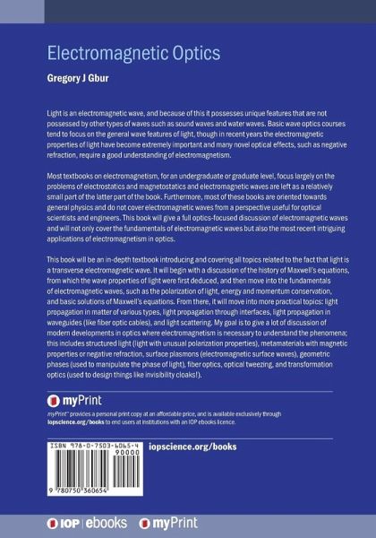 This book will be an in-depth textbook introducing and covering all topics related to the fact that light is a transverse electromagnetic wave.