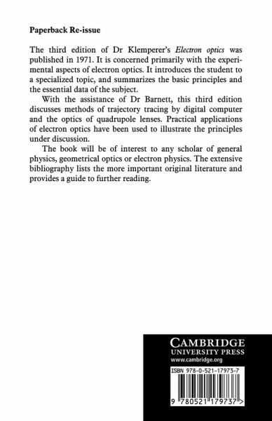 The third edition of Dr Klemperer's Electron Optics was published in 1971. It is concerned primarily with the experimental aspects of electron optics. It introduces the student to a specialized topic, and summarizes the basic principles and essential data related to the subject. With the assistance of Dr Barnett, this third edition discusses methods of trajectory tracing by digital computer and the optics of quadrupole lenses. Practical applications of electron optics have been used to illustrate the principles under discussion. The book will be of interest to any scholar of general physics, geometrical optics or electron physics. The extensive bibliography lists the more important original literature and provides a guide to further reading.
