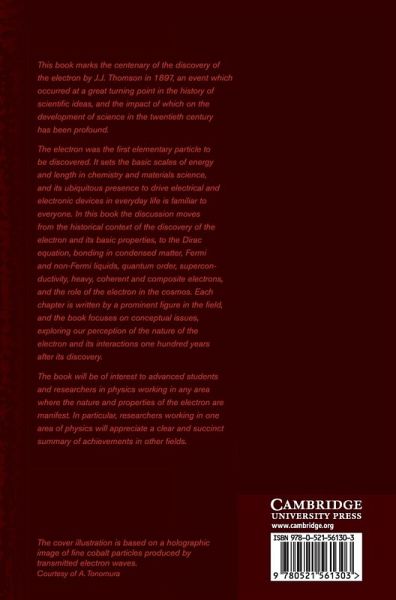 This book marked the centenary of the discovery of the electron by J. J. Thomson in 1897, an event which occurred at a great turning point in the history of scientific ideas, and the impact of which on the development of science in the twentieth century has been profound. The electron was the first elementary particle to be discovered. It sets the basic scales of energy and length in chemistry and materials science, and its ubiquitous presence to drive electrical and electronic devices in everyday life is familiar to everyone. In this book the discussion moves from the historical context of the discovery of the electron and its basic properties, to the Dirac equation, bonding in condensed matter, Fermi and non-Fermi liquids, quantum order, superconductivity, heavy, coherent and composite electrons, and the role of the electron in the cosmos, with each chapter written by a prominent figure in the field.