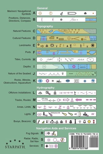 A compilation of nautical chart symbols used on electronic navigational charts (ENC), edited to meet international standards and annotated to clarify nuances in the symbol usage as needed. An appendix includes a complete list of all ENC chart objects and attributes. At the end of 2024, all traditional NOAA paper charts will have been permanently discontinued and the ENC that replaces them will be the only official nautical charts of US waters. These chart symbols will become increasing more important as mariners transition to the use of ENC.