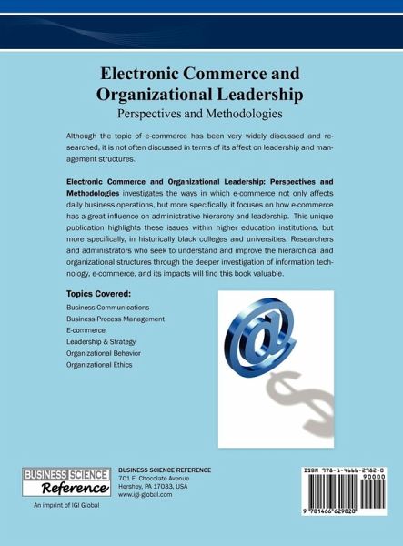 Although the topic of e-commerce has been very widely discussed and researched, it is not often discussed in terms of its affect on leadership and management structures. Electronic Commerce and Organizational Leadership: Perspectives and Methodologies investigates the ways in which e-commerce not only affects daily business operations, but more specifically, it focuses on how e-commerce has a great influence on administrative hierarchy and leadership. This unique publication highlights these issues within higher education institutions, but more specifically, in historically black colleges and universities. Researchers and administrators who seek to understand and improve the hierarchical and organizational structures through the deeper investigation of information technology, e-commerce, and its impacts will find this book valuable.