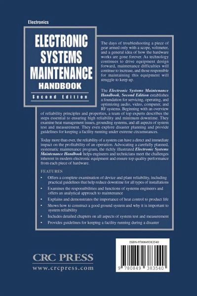 Probability and Statistics. Electronic Hardware Reliability. Software Reliability. Thermal Properties. Heat Management. Shielding and EMI Considerations. Resistors and Resistive Materials. Capacitance and Capacitors. Inductors and Magnetic Properties. Printed Wiring Boards. Hybrid Microelectronics Technology. Surface Mount Technology. Semiconductor Failure Modes. Power System Protection Alternatives. Facility Grounding. Network Switching Concepts. Network Communication. Data Acquisition. Computer-Based Circuit Simulation. Audio Frequency Distortion Mechanisms and Analysis. Video Display Distortion Mechanisms and Analysis. Radio Frequency Distortion Mechanisms and Analysis. Digital Test Equipment and Measurement Systems. Fourier Waveform Analysis. Computer Based Signal Analysis. Systems Engineering Concepts. Disaster Planning and Recovery. Safety and Protection Systems. Conversion Tables. Index