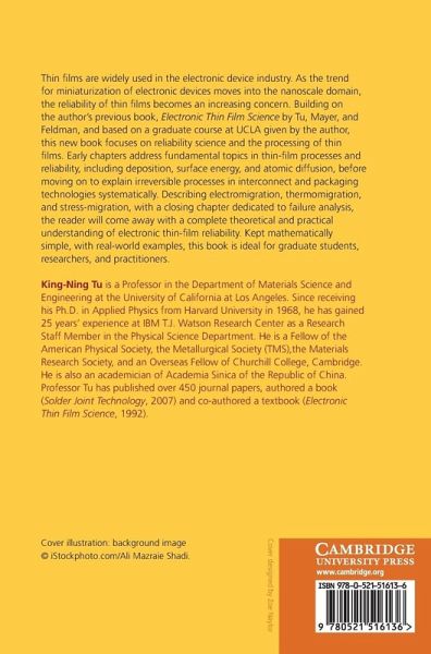 Thin films are widely used in the electronic device industry. As the trend for miniaturization of electronic devices moves into the nanoscale domain, the reliability of thin films becomes an increasing concern. Building on the author's previous book, Electronic Thin Film Science by Tu, Mayer and Feldman, and based on a graduate course at UCLA given by the author, this new book focuses on reliability science and the processing of thin films. Early chapters address fundamental topics in thin film processes and reliability, including deposition, surface energy and atomic diffusion, before moving onto systematically explain irreversible processes in interconnect and packaging technologies. Describing electromigration, thermomigration and stress migration, with a closing chapter dedicated to failure analysis, the reader will come away with a complete theoretical and practical understanding of electronic thin film reliability. Kept mathematically simple, with real-world examples, this book is ideal for graduate students, researchers and practitioners.