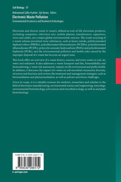 This book offers an overview of e-waste history, sources, and entry routes in soil, air, water and sediment. It also addresses e-waste transport and fate, bioavailability and biomonitoring, e-waste risk assessment, impacts on the environment and public health. In addition, it discusses the impact of e-waste on soil microbial community diversity, structure and function and reviews the treatment and management strategies, such as bioremediation and phytoremediation, as well as policies and future challenges.