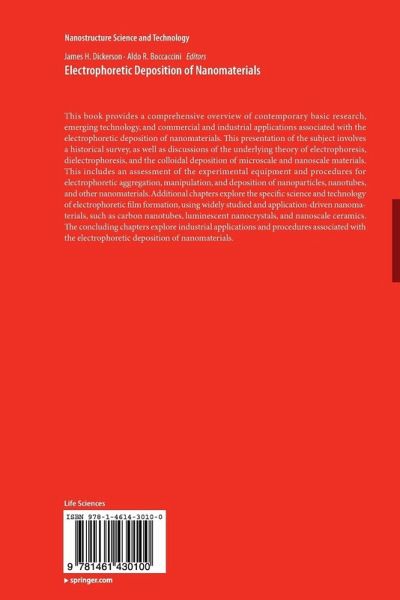 This book provides a comprehensive overview of contemporary basic research, emerging technology, and commercial and industrial applications associated with the electrophoretic deposition of nanomaterials. This presentation of the subject includes an historical survey, the underlying theory of electrophoresis, dielectrophoresis, and the colloidal deposition of materials. This is followed by an assessment of the experimental equipment and procedures for electrophoretic and dielectrophoretic aggregation, manipulation, and deposition of nanoparticles, nanotubes, and other nanomaterials. Additional chapters explore the specific science and technology of electrophoretic film formation, using widely studied and application-driven nanomaterials, such as carbon nanotubes, luminescent nanocrystals, and nano-ceramics. The concluding chapters explore industrial applications and procedures associated with electrophoretic deposition of nanomaterials.